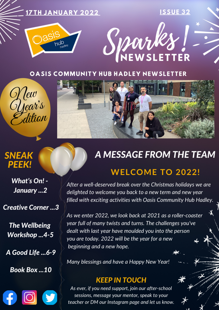 Each month we publish our newsletter detailing the latest activities, events, projects, and general news about Oasis Hub Hadley.